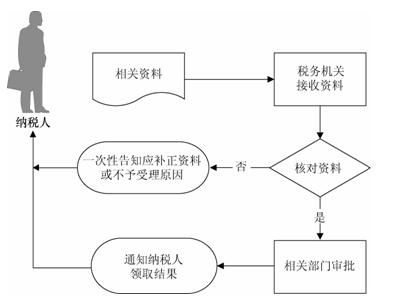(1)税务机关接收资料,核对资料是否符合法定形式、内容是否完整,符合的即时受理;不符合的当场一次性告知应补正资料或不予受理原因。