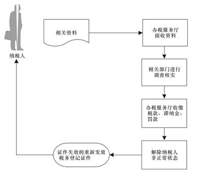 (2)办税服务厅根据管理部门反馈情况,在纳税人补充申报、补缴税款、滞纳金、罚款后,解除纳税人非正常状态。